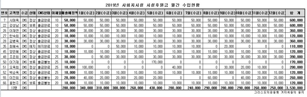 시설 후원금 수입내역